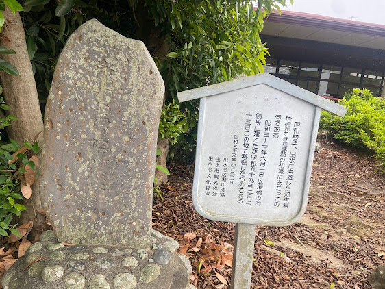 碧梧桐が大正15年に出水に来訪した際に、西照寺の井上徳命師に短冊を贈り、その字を刻んだ句碑。6月1日の鮎の初漁を行っている人々の様子を詠んだものだと思われる。